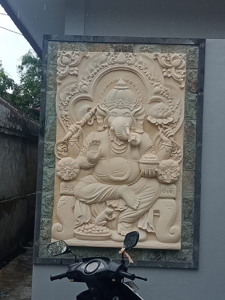 Relief Aling-aling Ganesa merupakan mahakarya seni pahat batu yang biasanya ditemukan pada posisi strategis di gerbang atau pintu masuk bangunan suci. Secara fisik, relief ini menampilkan sosok Ganesa, putra Dewa Siwa, yang digambarkan dengan kepala gajah dan tubuh manusia yang tambun. Ikonografi Ganesa dalam relief ini umumnya mengikuti pakem Vighnesvara, sang penghalau rintangan. Ganesa duduk dalam posisi Utkutikasana, di mana kedua telapak kakinya bertemu, menciptakan kesan stabil dan kokoh sebagai penjaga.